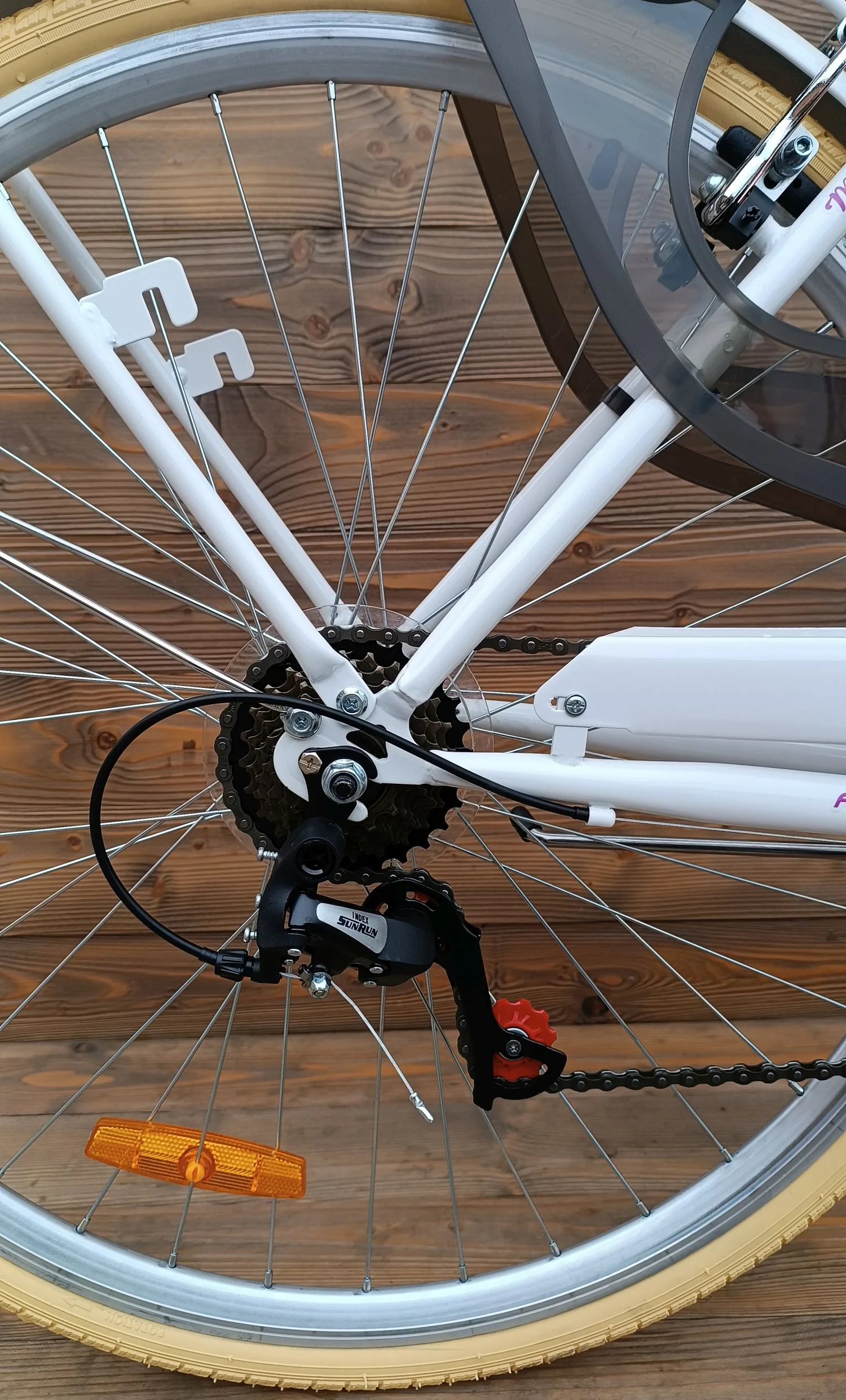 Culoare: Cadru alb; sa, portbagaj fata, mansoane negre