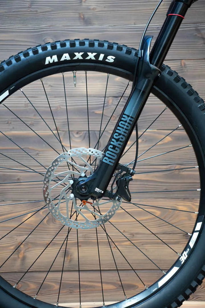Cadrul usor din carbon cu triunghiul spate din aluminiu economiseste greutate, iar noua constructie a subcadrului ofera mai multa rigiditate torsionala. Cu elementele de suspensie RockShox de 160 mm in fata si in spate, poti calca cu usurinta terenul accidentat.