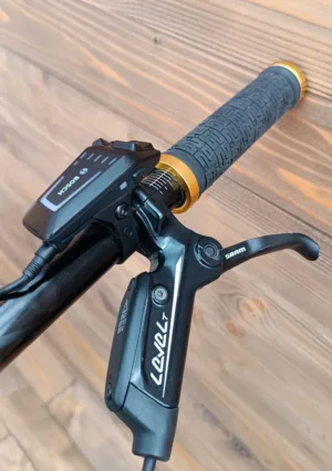 Frane: Sram Level T, etrier de frana din doua piese, disc de frana cu 6 orificii de 200 mm (fata) / 180 mm (spate) din doua piese, placute de frana organice cu placa din otel