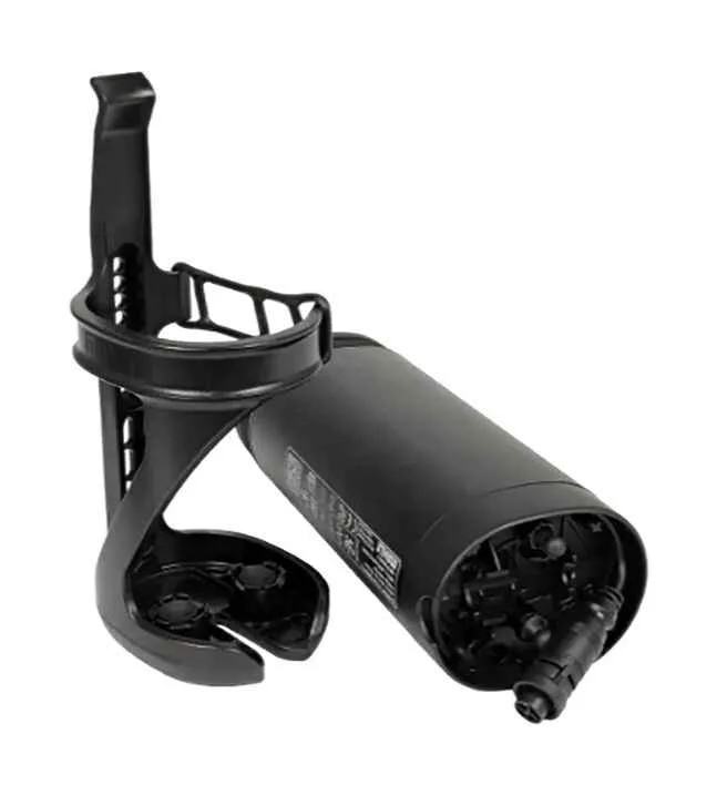 Extinzatorul de autonomie este atasat la cutia pentru sticle si este montat discret pe bicicleta cu forma sa de sticla de apa.
