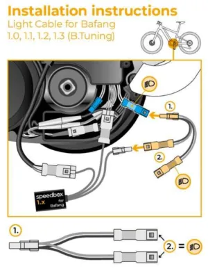 Prin atasarea acestui conector simplu, puteti utiliza SpeedBox 1.0, 1.1, 1.2 si 1.3 pentru Bafang si luminile dvs. in acelasi timp.