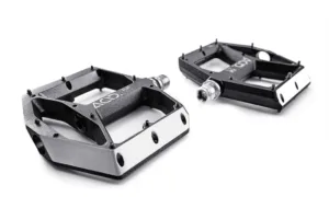 Marginile tesite imbunatatesc stabilitatea si permit o manevrare precisa in viraje stranse. Platforma mare asigura o suprafata de contact optima, iar designul ultra-subtire adauga un plus de eficienta. Fiecare parte a pedalei este echipata cu noua pini anti-alunecare, ajustabili si inlocuibili, care asigura aderenta maxima fara compromisuri. Bucsele cu rulmenti etansati garanteaza o functionare lina si o durata de viata extinsa.