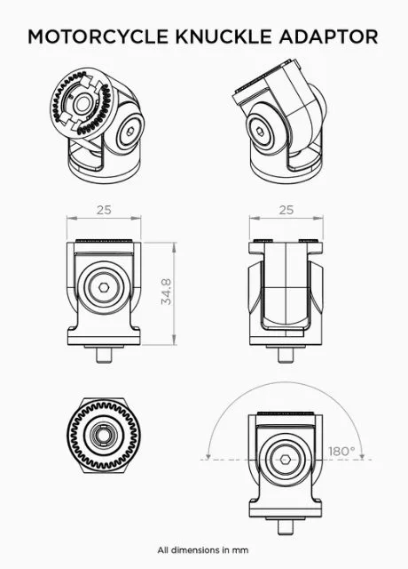Potrivit pentru suporturile Quad Lock pentru ghidon, pipa furca si oglinda, adaptorul Quad Lock pentru articulatii pentru motocicleta poate fi integrat intre suport si capul index pentru a oferi inaltime suplimentara si un alt nivel de reglare atunci cand setati unghiul de vizualizare al smartphone-ului.