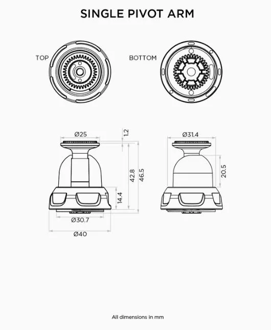 Bratul cu un singur pivot este o optiune discreta atunci cand doriti sa obtineti o distanta mica fata de baza, precum si o multitudine de unghiuri pentru a monta smartphone-ul.