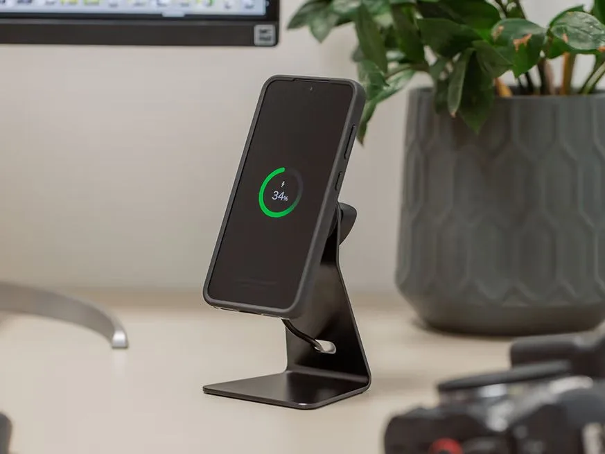 Combinati capul de incarcare wireless Quad Lock MAG cu suportul auto sau de birou Quad Lock pentru o montare magnetica sigura si o incarcare wireless convenabila.