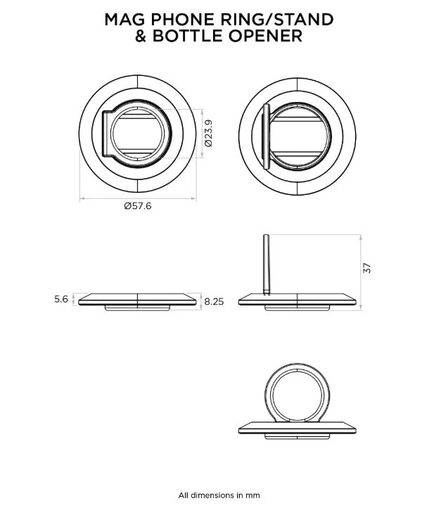 Compatibil cu carcasele Quad Lock MAG, inelul/suportul pentru telefon si deschizatorul de sticle Quad Lock MAG ofera o fixare mai sigura a telefonului, datorita inelului de dimensiuni mari, suportului pentru vizualizare fara maini sau poate fi scos de pe telefon pentru a deschide o sticla.
