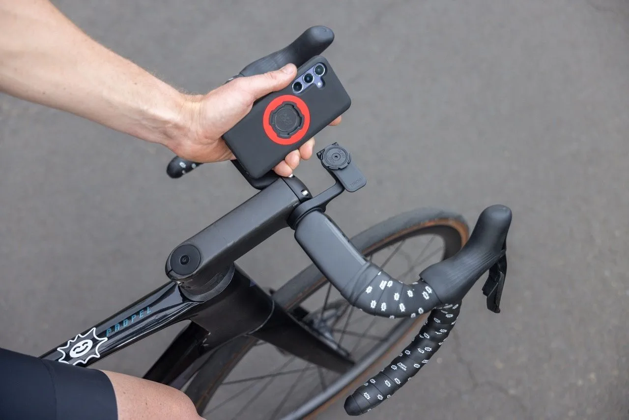 Adauga o maneta colorata pentru a personaliza suportul Quad Lock pe bicicleta.