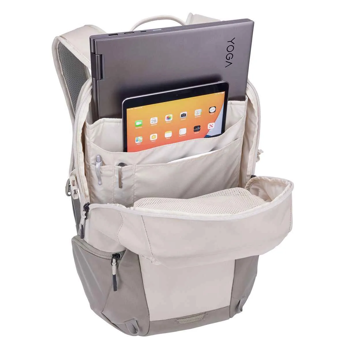 Buzunarele inalte si dedicate protejeaza un laptop de pana la 15,6″ si o tableta de pana la 10,5″