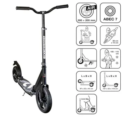 Scooter Six Degrees aluminiu AIR black 300mm 205mm