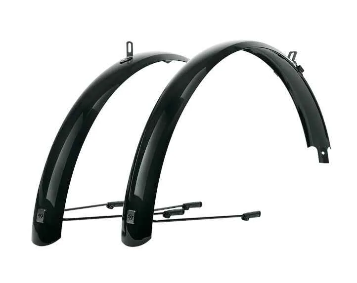 Mai multa protectie, mai mult stil, mai multe posibilitati – un adevarat tur de forta! Setul de aparatori de noroi SKS BLUEMELS BASIC nu numai ca se integreaza perfect pe bicicleta, dar si protejeaza fiabil impotriva murdariei si a stropilor de apa. Datorita constructiei sandwich flexibile, in care benzi de aluminiu ultrafine sunt incorporate intr-un strat de plastic, aparatoarea de roti este extrem de robusta, rezistenta la indoire si protejata impotriva coroziunii.