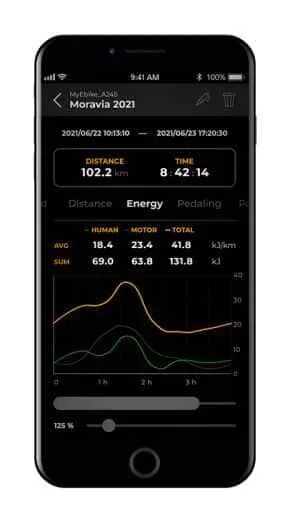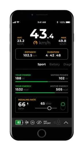 Aplicatia SpeedBox este o aplicatie special conceputa pentru SpeedBox 1.2 B.Tuning, care utilizeaza tehnologia Bluetooth pentru a va conecta bicicleta electrica la telefonul mobil. Dupa descarcarea aplicatiei si conectarea telefonului mobil la bicicleta electrica, veti vedea datele actuale si parametrii de calatorie afisati pe telefon. Va puteti stoca calatoriile, puteti compara rezultatele cu prietenii si va puteti monitoriza performanta si progresul. Datorita acestui fapt, va puteti bucura pe deplin de calatorie si puteti lasa analiza datelor de performanta pentru mai tarziu.