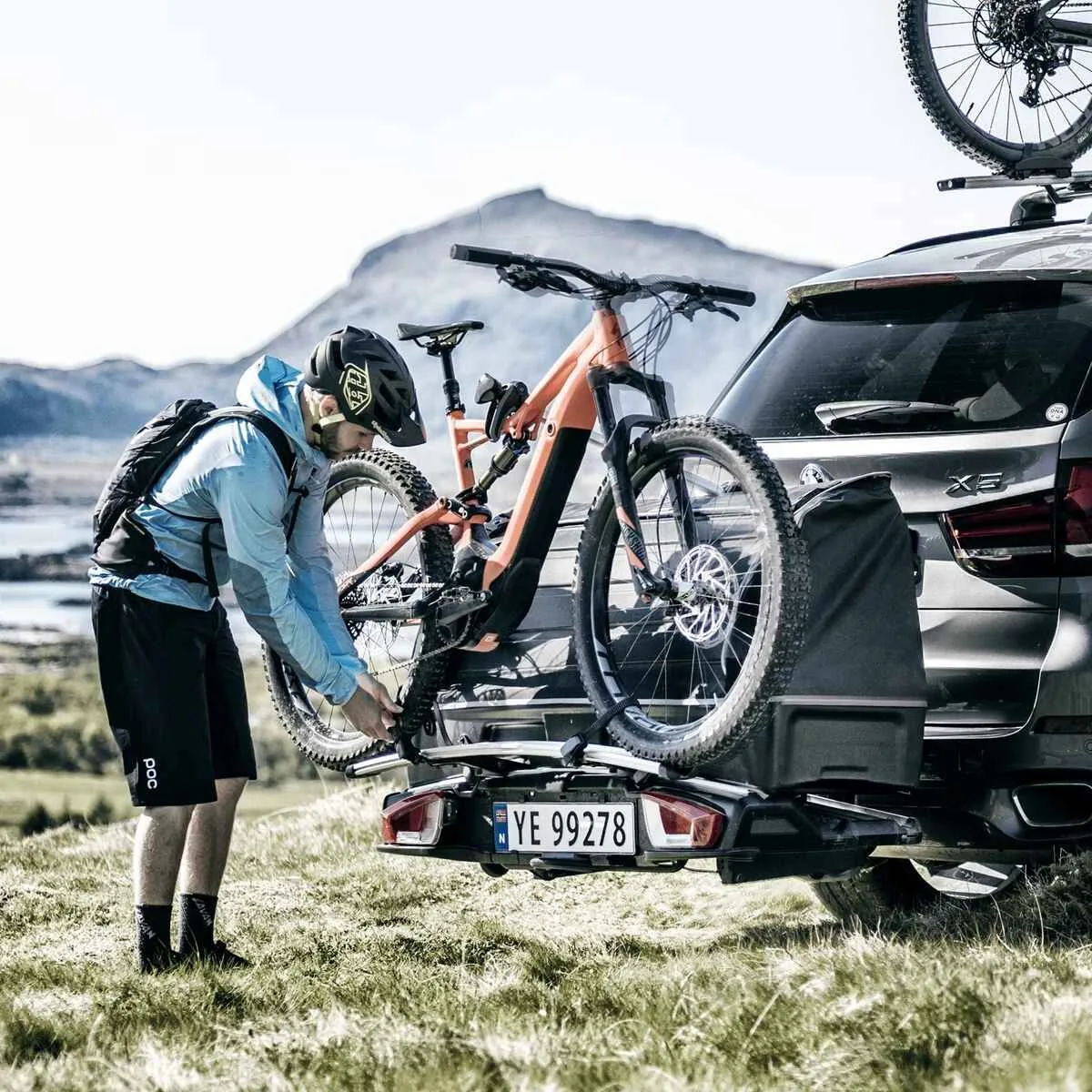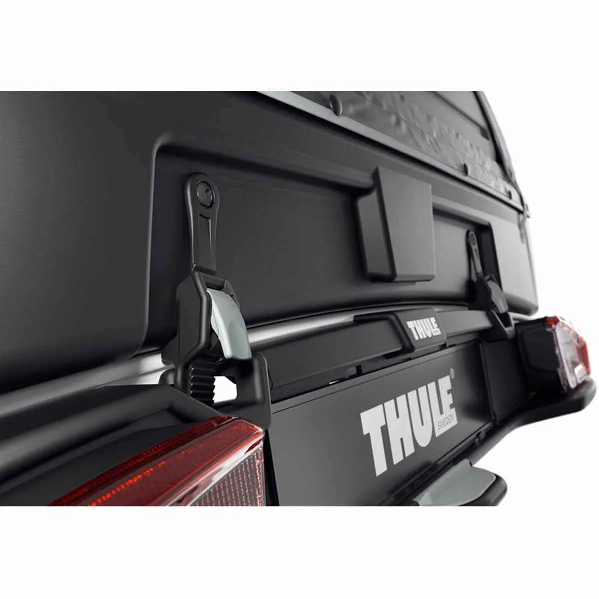 Se monteaza cu usurinta direct pe suportul pentru biciclete Thule VeloSpace XT montat pe bara de tractare ? nu sunt necesare unelte.