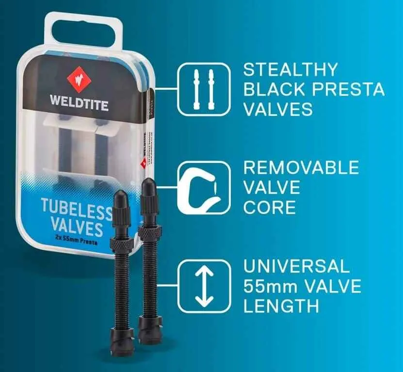 Singurele supape de care aveti nevoie pentru configuratia dumneavoastra fara camera. Aceste supape negre ascunse sunt special concepute pentru a imbunatati experienta fara camera. Cand trebuie sa completati etansantul, scoateti miezul supapei si injectati etansant Weldtite proaspat – nu este nevoie sa demontati anvelopa!